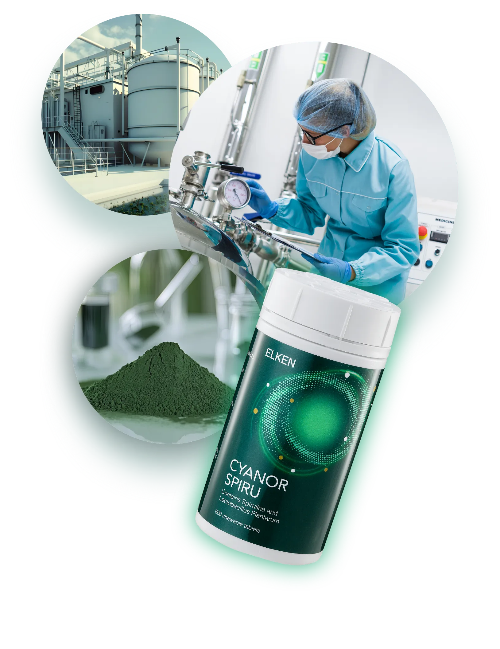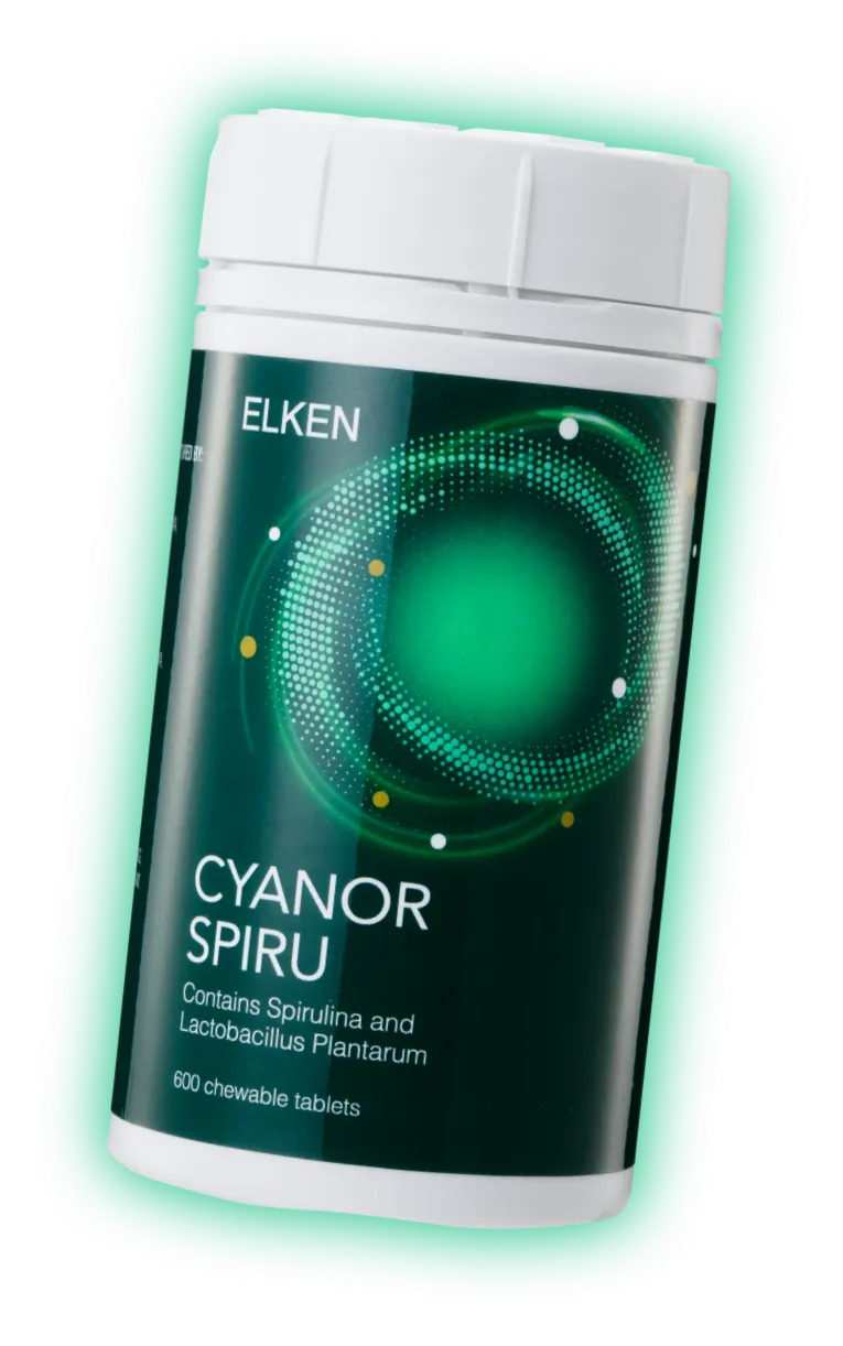 Cyanor is a food supplement made from bio-transformed spirulina (Arthrospira platensis), organic spirulina, and Lactobacillus plantarum probiotics.